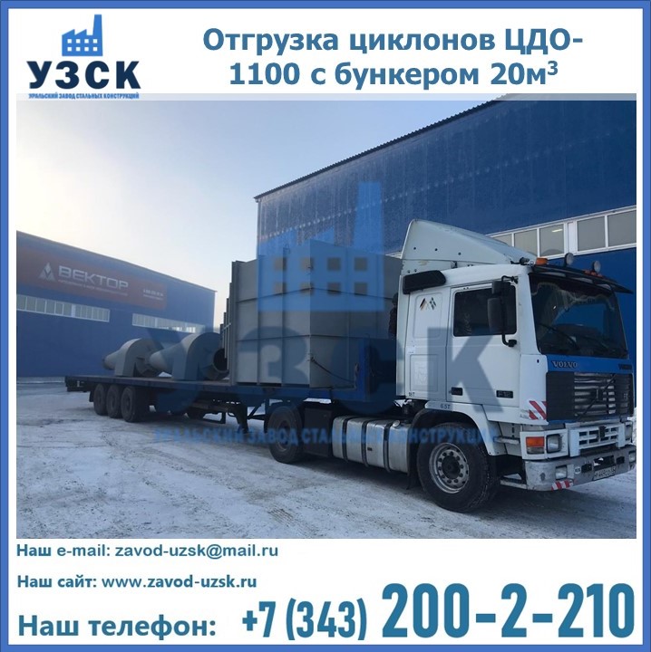 Циклоны ЦДО-1100 с бункером на 20 кубов были отгружены в декабре 2018 года в г. Новосибирск Обнинск.