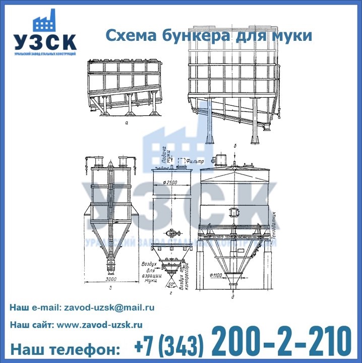 Завод «УЗСК» в Обнинске осуществляет проектирование, производство и продажу бункеров для муки. Всю информацию, касающуюся производства, реализации и установки емкостного оборудования можно узнать на нашем сайте или по телефонам, указанным в разделе «КОНТАКТЫ».
