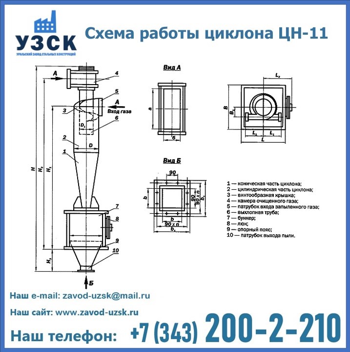 При этом ощутимой разницы в цене между универсальным и узконаправленным, подобранным в соответствии с конкретными техническими требованиями циклоном, нет. Стоимость воздухоочистительного оборудования типа циклон обусловлена маркой и толщиной стали, из которого он изготовлен, сложностью и специфичностью конструкции, наличием дополнительного оснащения (бункер, улитка и другие). При необходимости, на заводе УЗСК в Обнинске будет изготовлен циклон по индивидуальным техническим чертежам заказчика.