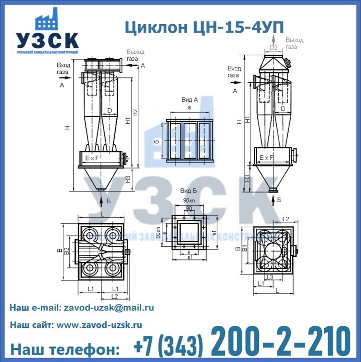Завод «УЗСК» в Обнинске предлагает большой выбор циклонов ЦН-15-900×4УП и прочих устройств, полностью укомплектованных и готовых к эксплуатации. Мы гарантируем соответствие оборудования всем требованиям ГОСТ и ТУ, износостойкость и высокую производительность предлагаемого оборудования. Уральский Завод Стальных Конструкций изготавливает и продает надежное, эффективное и производительное оборудование, имеющее длительную гарантию и большой эксплуатационный ресурс. Если требуется изготовить циклон нестандартных размеров, то такой вариант выполнения заказа тоже предусмотрен, так как предприятие имеет собственные производственные площади и надежных поставщиков. На все поставляемое или производимое оборудование имеются чертежи и прочая техническая документация. Заказать и купить циклоны или прочее оборудование высокого качества и по доступной цене можно через наш сайт или по указанному в разделе «Контакты» телефону.