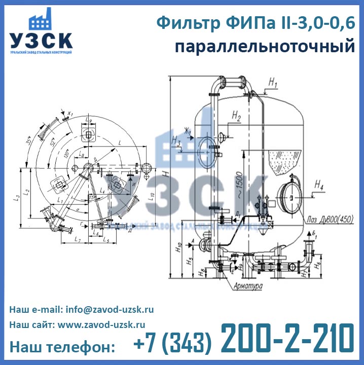 Актуальные цены на ФИПаII-3,0-0,6 в Обнинске Вы можете уточнить в отделе продаж Уральского Завода Стальных Конструкций (производитель ионитных фильтров), для этого заполните форму заказа внизу страницы.