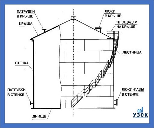 Основные элементы конструкции вертикального цилиндрического резервуара РВС